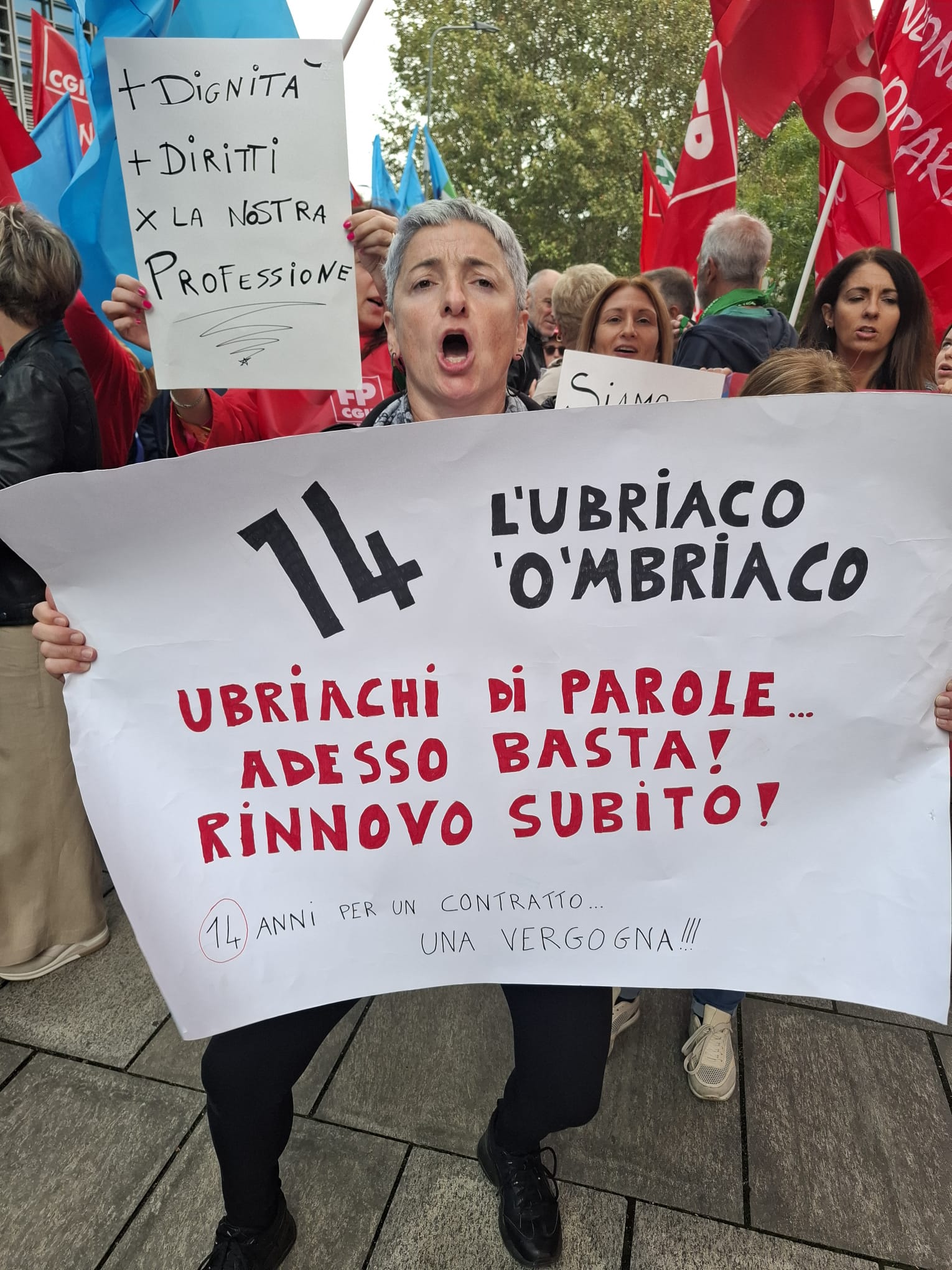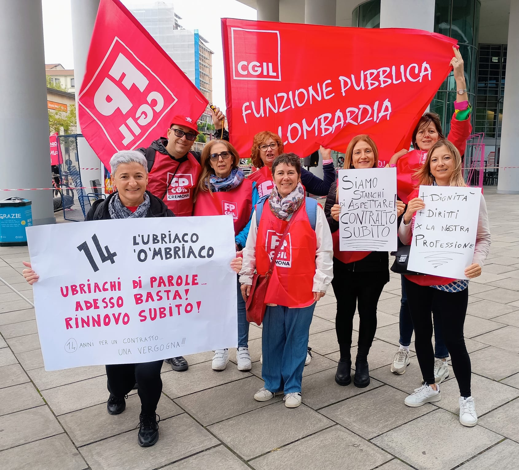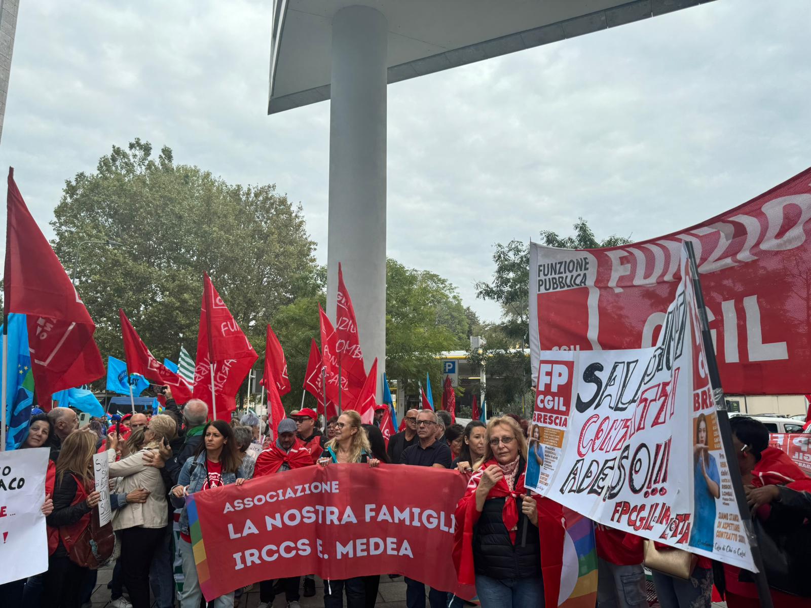 Il presidio è stato molto partecipato e colorato. Per la Fp Cgil, alla presenza del segretario nazionale Michele Vannini che ha tenuto le conclusioni, sono intervenuti: Loredana Baronio, operatrice socio assistenziale alla Fondazione Germani (Cr), Fabio Incerti, operatore dell’Associazione La Nostra Famiglia di Bosisio Parini (Lc), e Gianluca Cherchi, dell’Istituto Europeo di Oncologia di Milano.