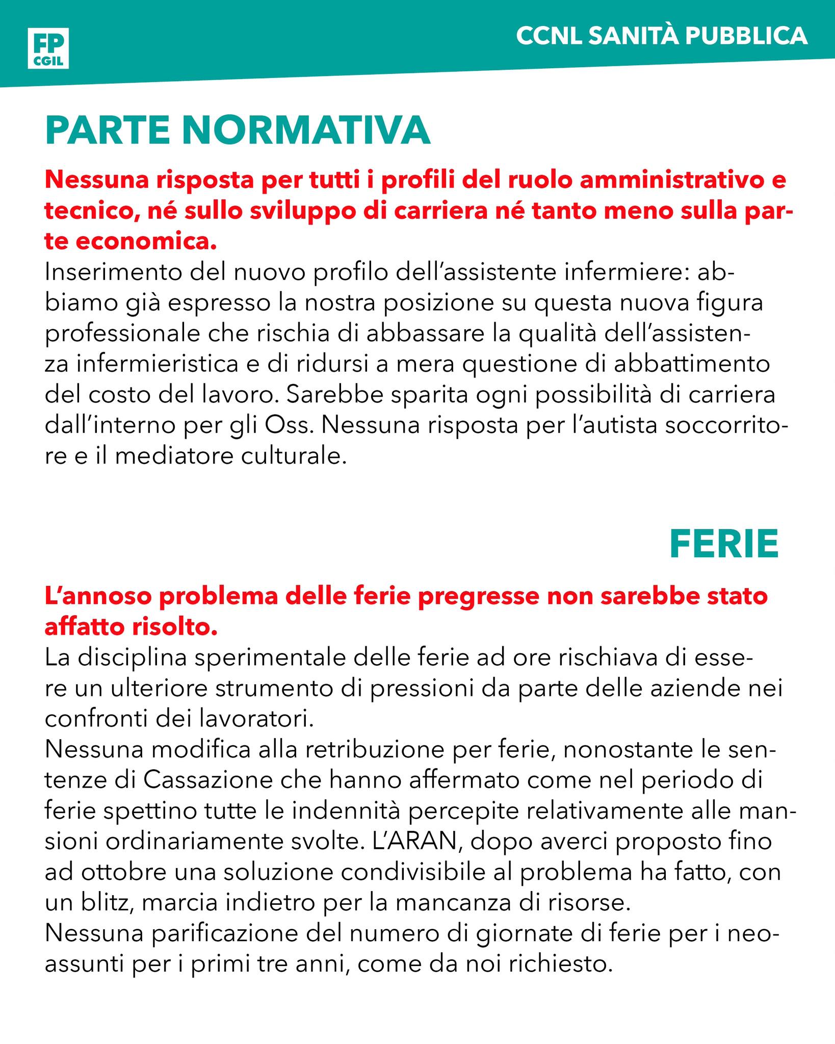 Nessuna parificazione del numero di giornate di ferie per i neoassunti per i primi tre anni, come richiesto dalla Fp Cgil.