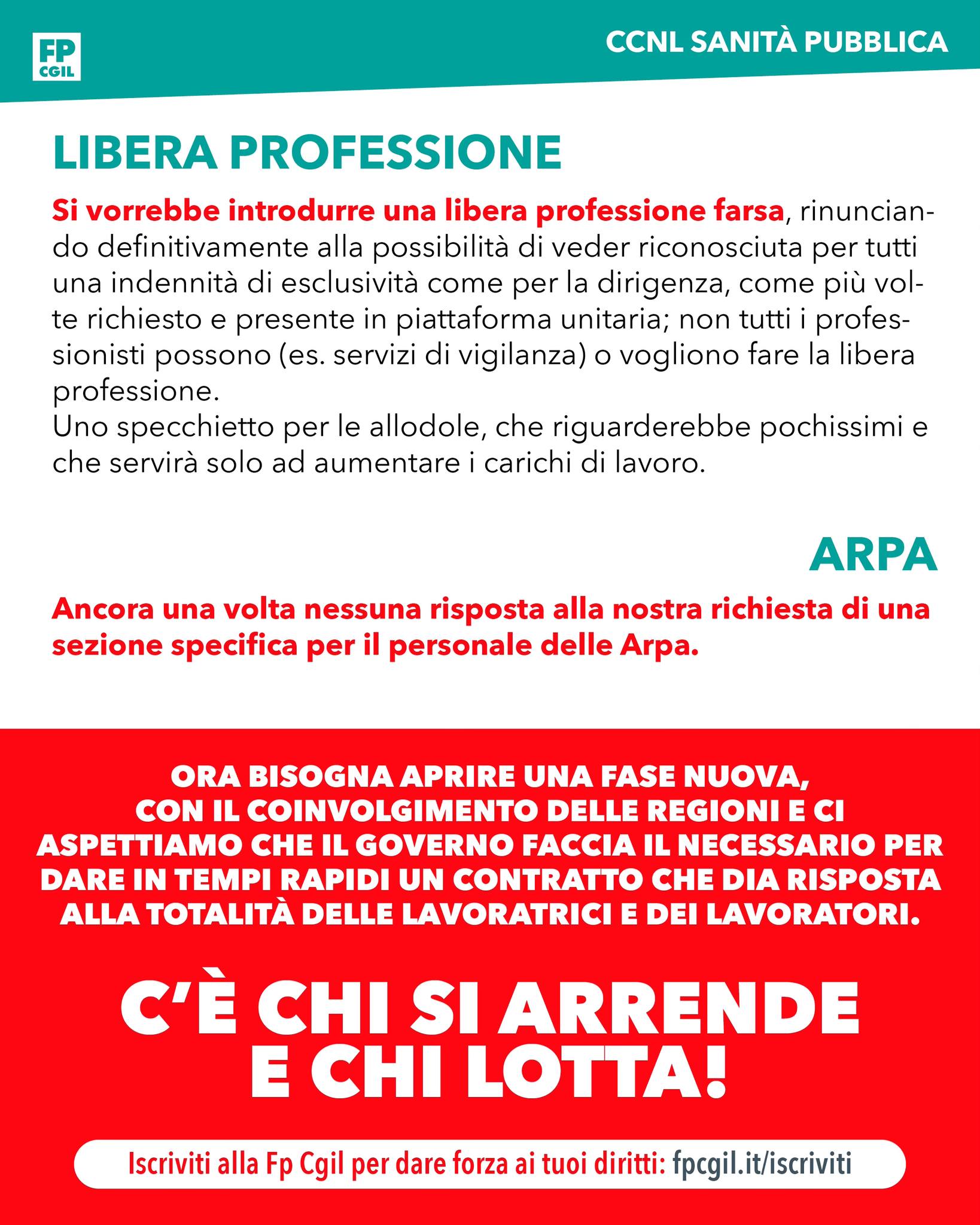 Si vorrebbe introdurre una libera professione farsa, rinunciando definitivamente alla possibilità di veder riconosciuta per tutti una indennità di esclusività come per la dirigenza, come più volte richiesto e presente in piattaforma unitaria; non tutti i professionisti possono (es. servizi di vigilanza) o vogliono fare la libera professione.