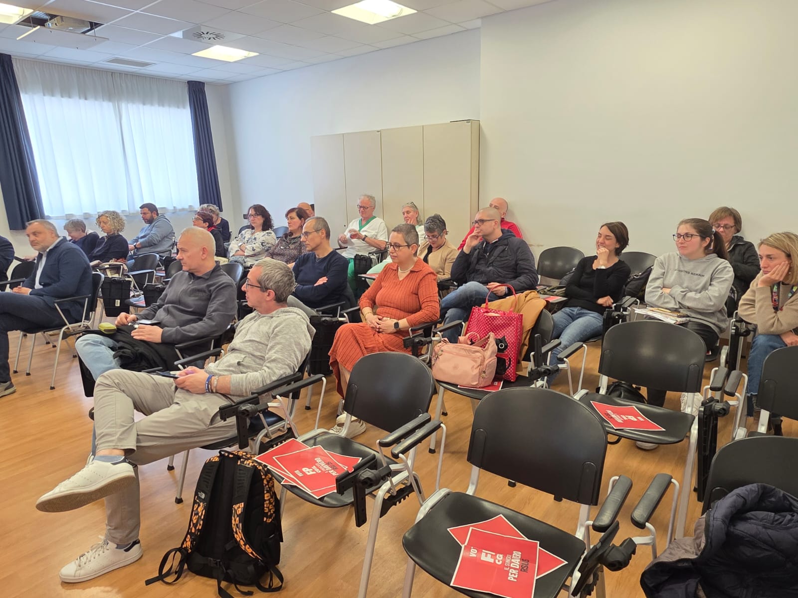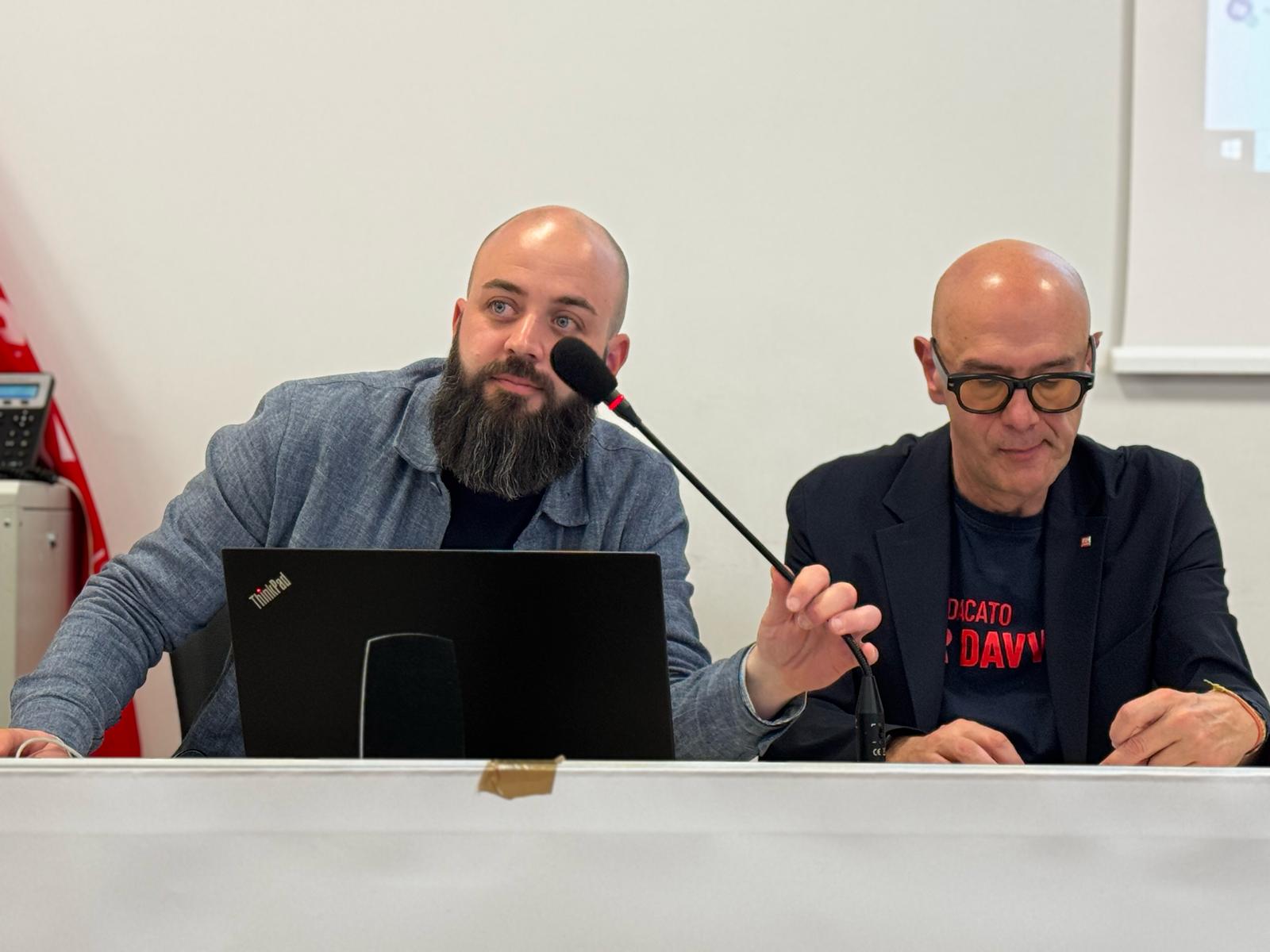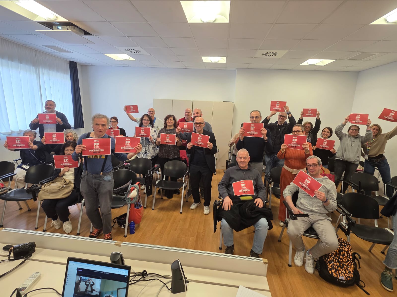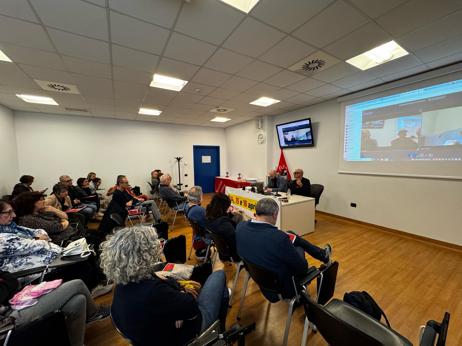 Assemblee attente, con lavoratrici e lavoratori della sanità, candidate e candidati, i gruppi dirigenti delle Fp Cgil territoriali, il segretario nazionale Michele Vannini e il segretario regionale Lello Tramparulo.