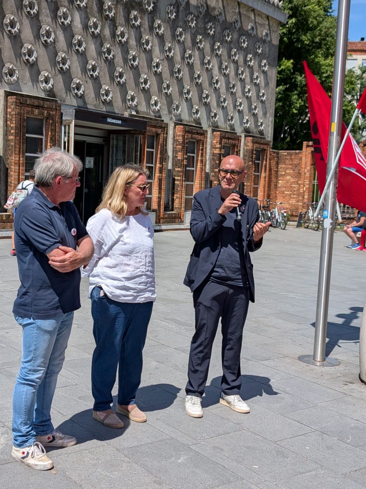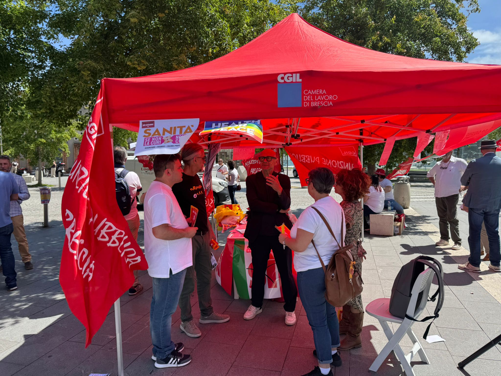 Nadia Lazzaroni, segretaria della Fp Cgil di Brescia, ha partecipato alla giornata di mobilitazione insieme a Francesco Bertoli, segretario generale della Camera del Lavoro, e a Michele Vannini, segretario nazionale della Fp Cgil, tornato a Brescia dopo l’iniziativa “Sanitari, curiamoci di noi”.