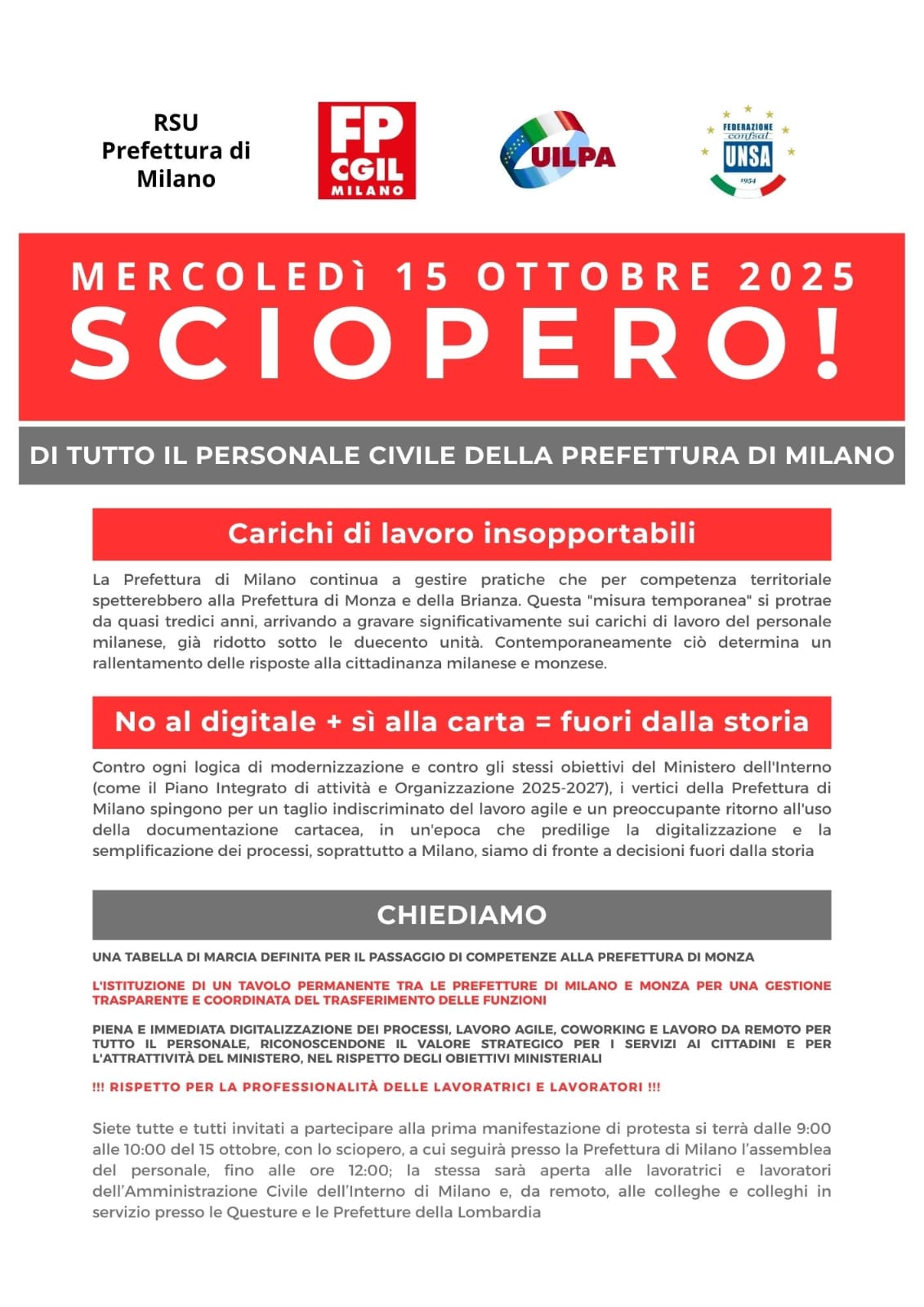 HomeIn evidenzaPrefettura di Milano / Sciopero il 15 ottobre