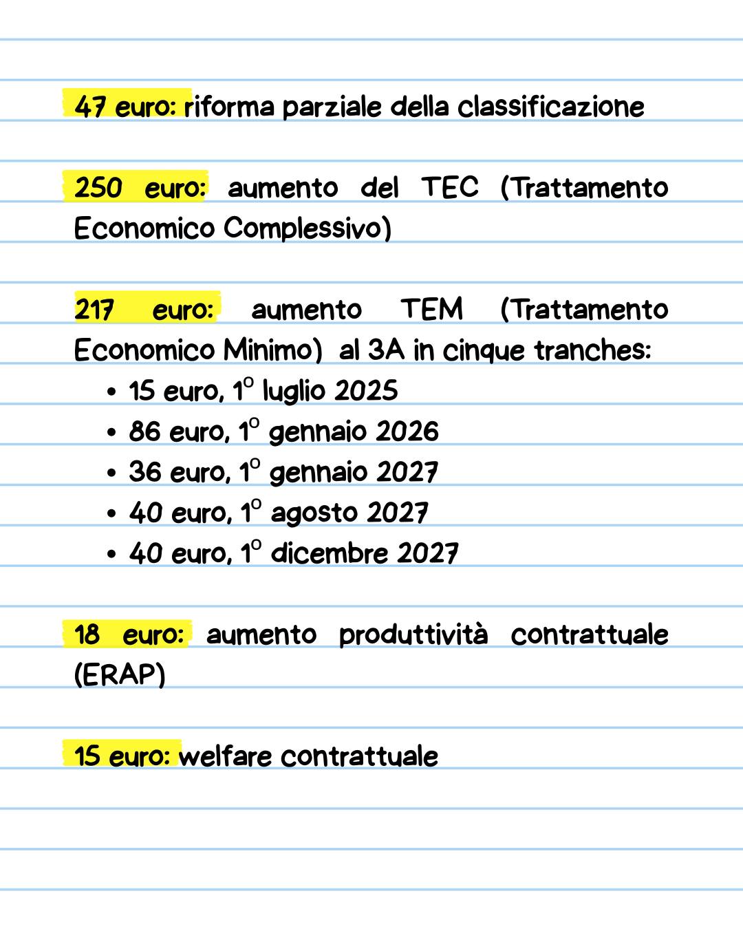 217 euro, aumento TEM (Trattamento Economico Minimo) al 3A in cinque tranches:
