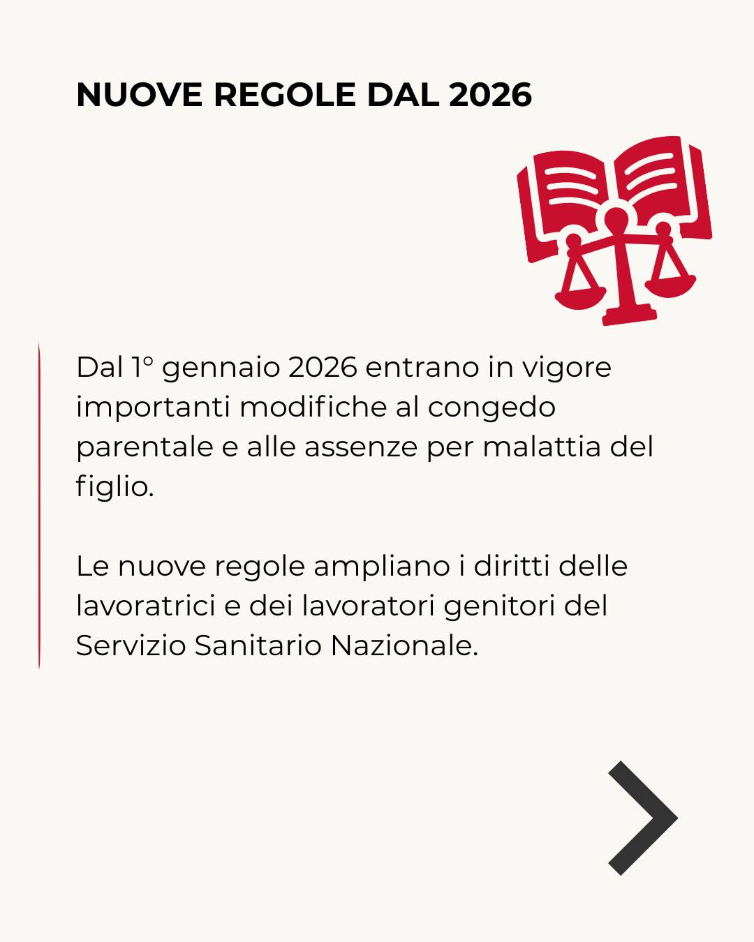 Dal 1° gennaio 2026 entrano in vigore le modifiche introdotte dalla Legge di Bilancio 2026 in materia di congedo parentale e permessi per malattia del figlio, che riguardano anche le lavoratrici e i lavoratori della Sanità Pubblica.