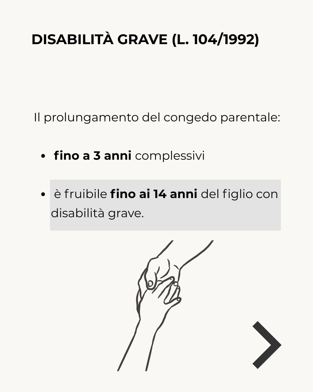 - è fruibile fino ai 14 anni del figlio con disabilità grave.