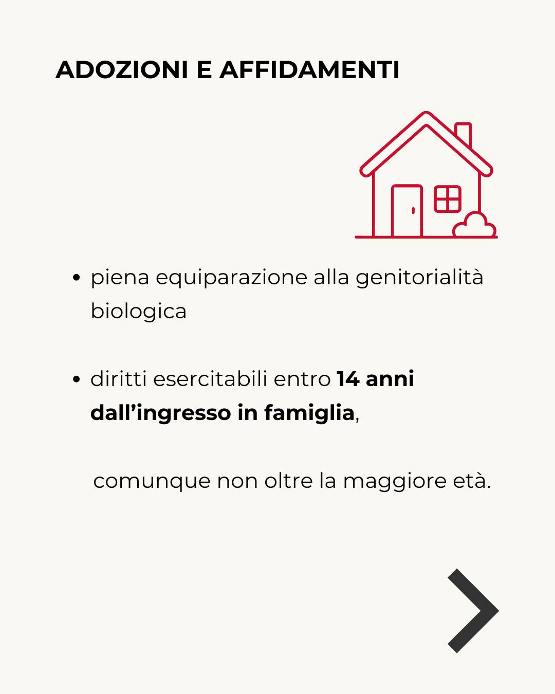 • la piena equiparazione tra genitorialità biologica, adozione e affidamento;